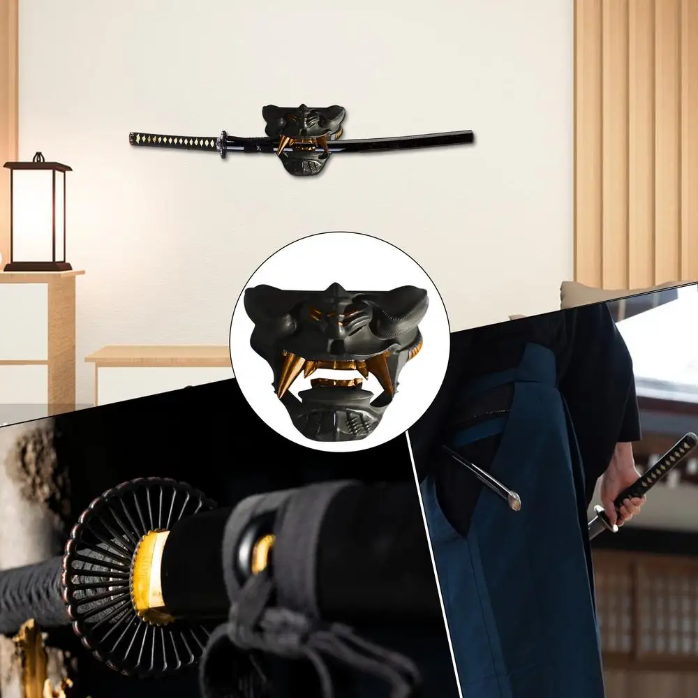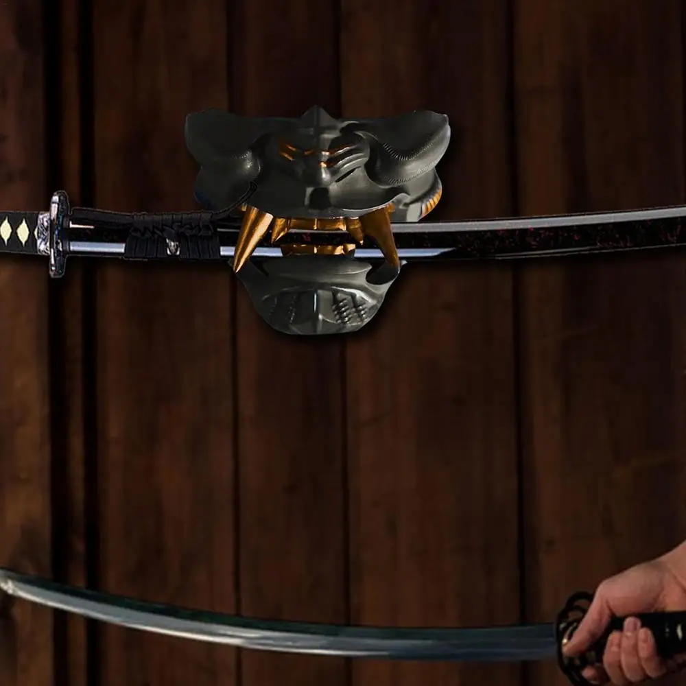 Katana Wall Holder Wall Mount Stand Japanese Black Samuraii Sword Wall Mount Demon Ghost Mask Storage Bracket Home Decoration