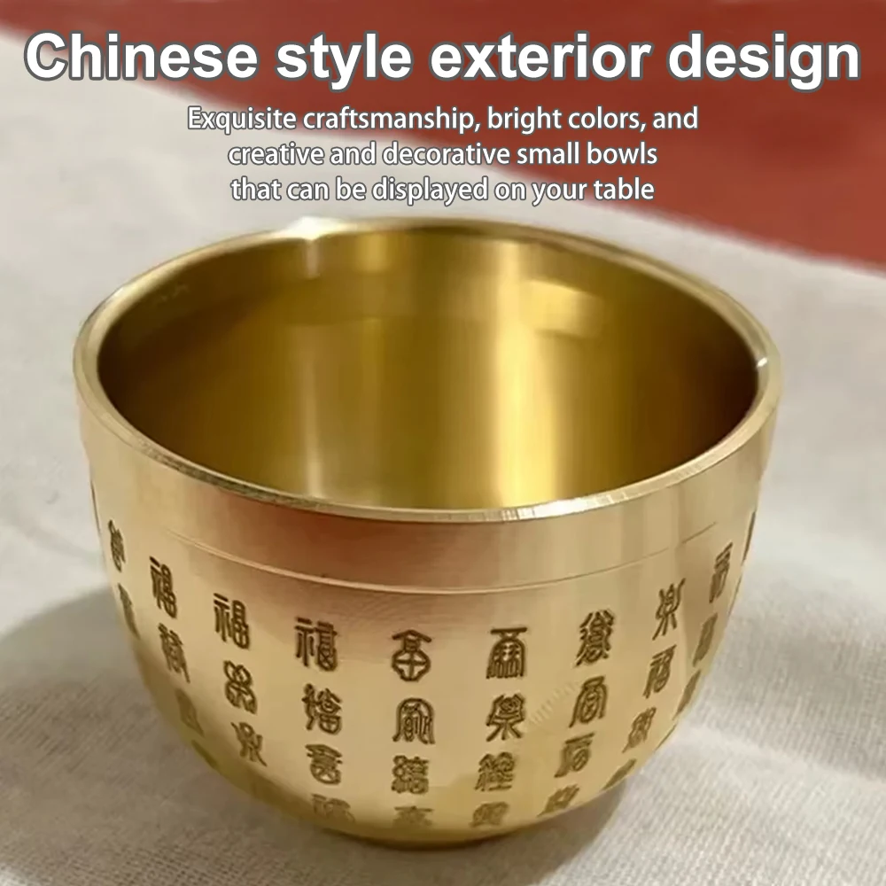 Pure Brass Hundred Blessings Cup Table Top Ashtray Dessert Bowl Fortune Map Treasure Collection Study Bauble Home Decoration